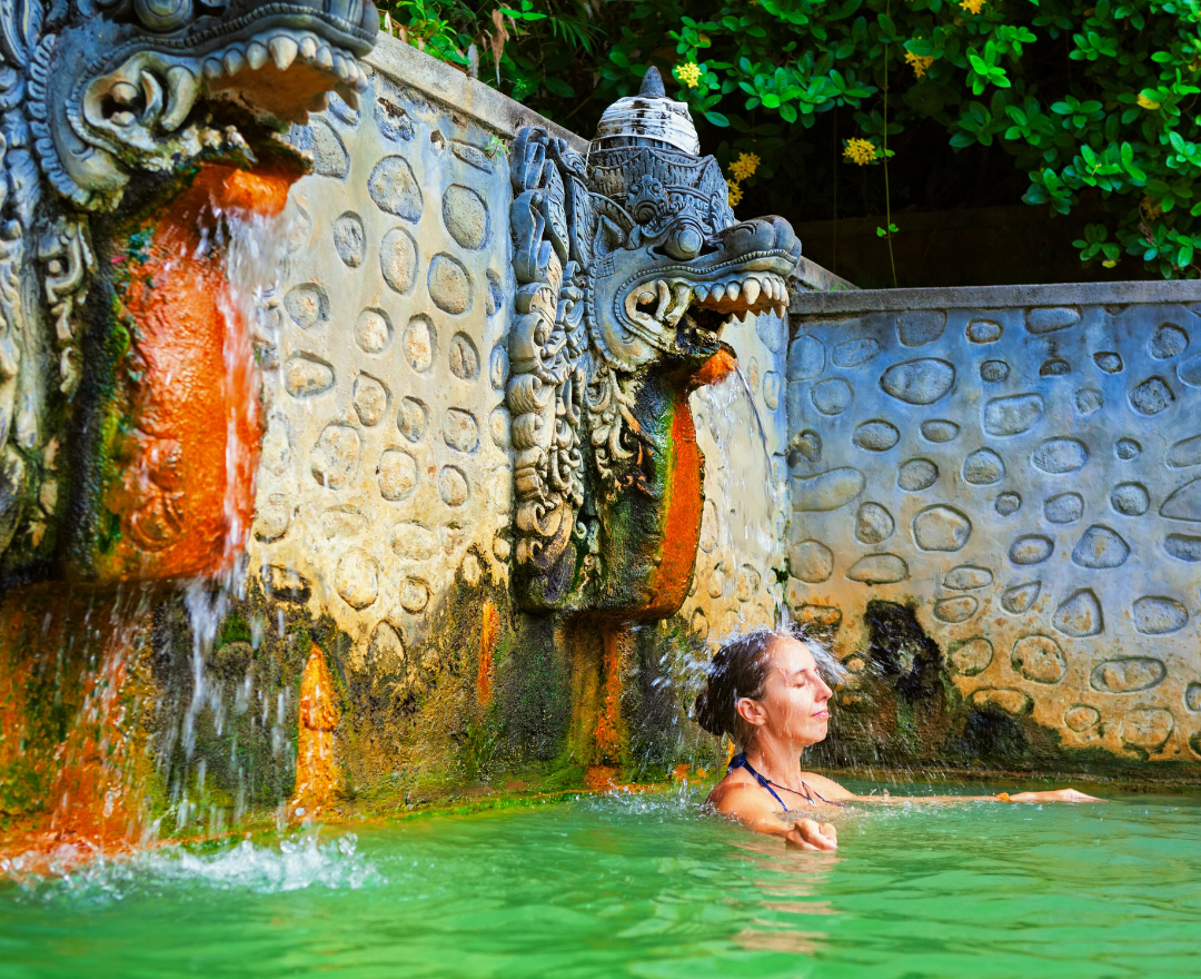 Hot springs surrounded by tropical gardens with pool & shower, plus dining & spa.