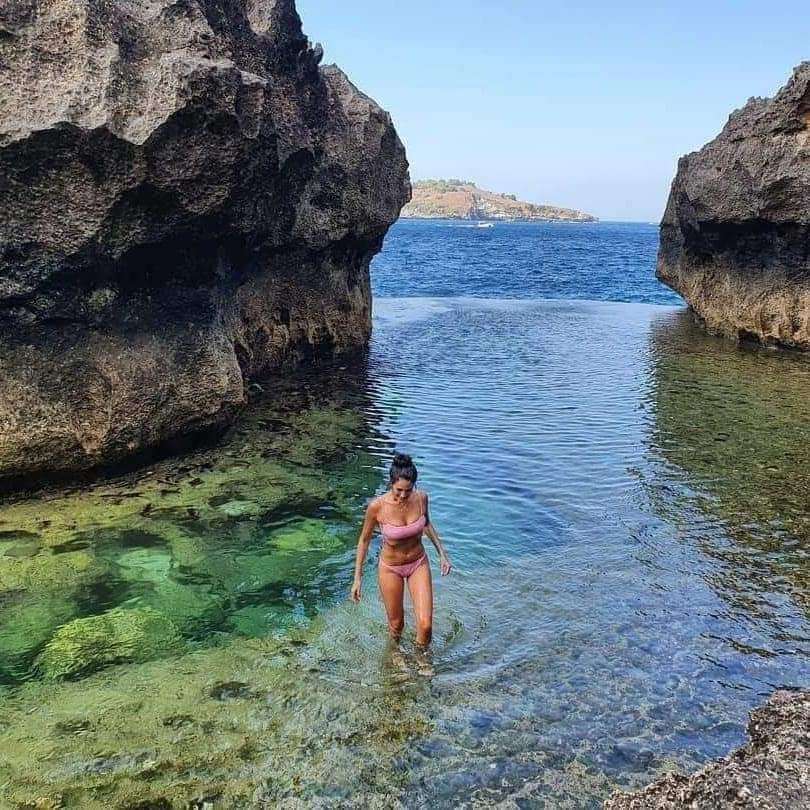 Angel's Billabong is actually a basin on the shoreline between rock formations where the water fills up at high tide and when the sea water recedes leaving a small pool that looks like the famous surf brand "Billabong", so this place is called "Angel Billabong".